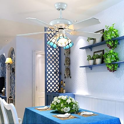 Fumat Tiffany Ceiling Fan Light Led Stained Glass Shade Hanging
